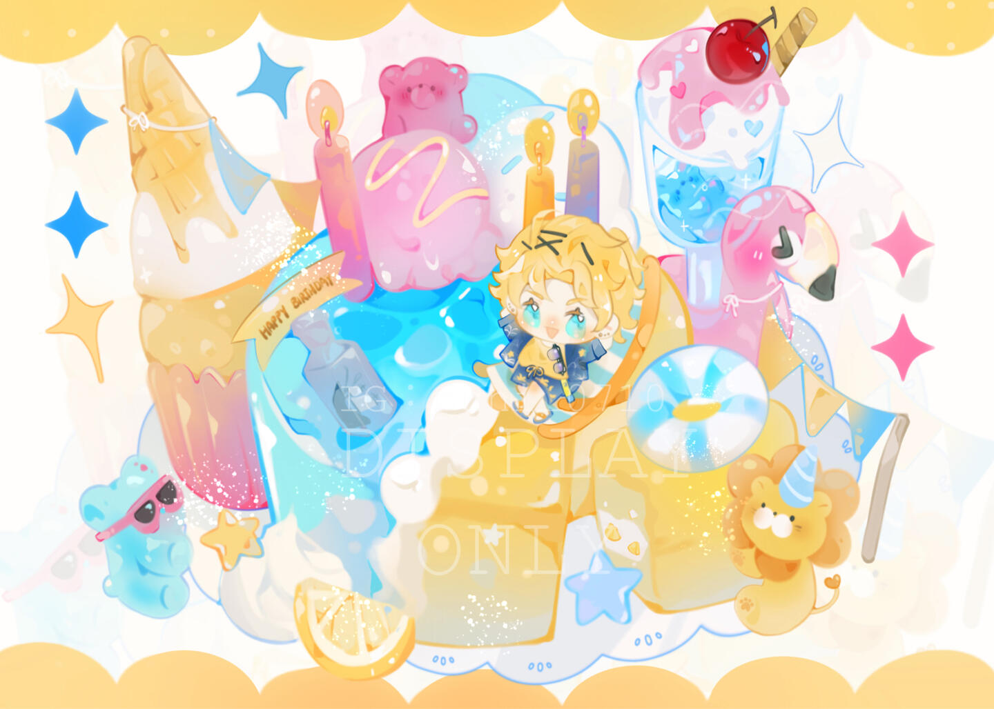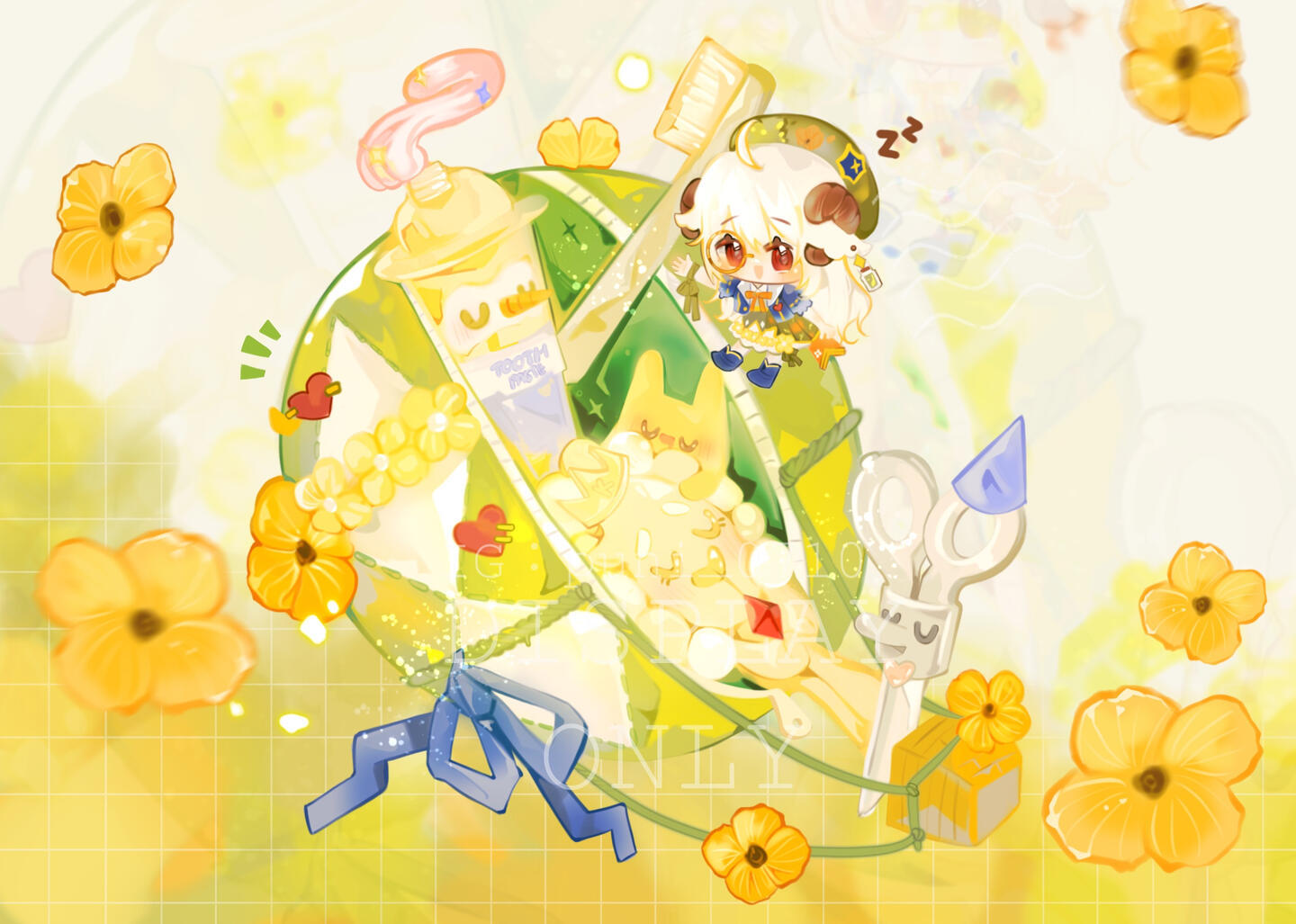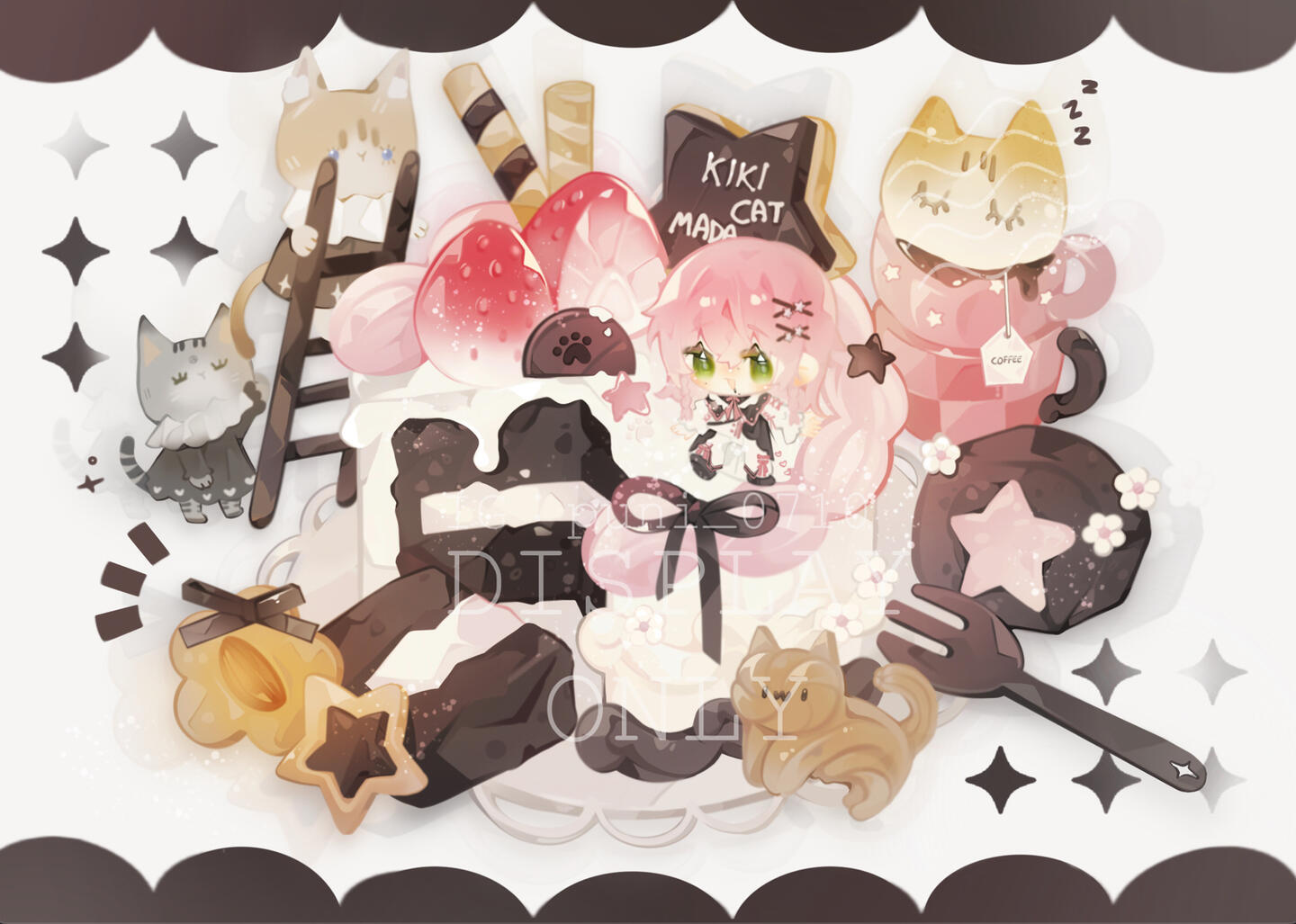 基础会有一個大蛋糕/主甜点/主食,飲料/甜點*2 & q版人物